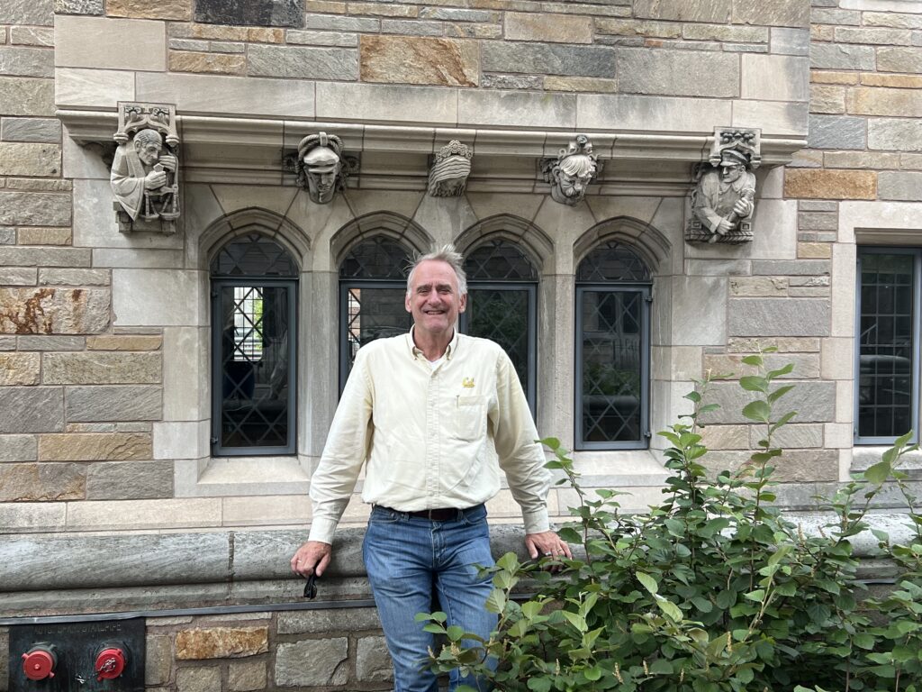 Outside my first year dorm room at the law school. My bedroom – it was a small suite – is under the billy club! The whole dorm is now, sadly, offices.
