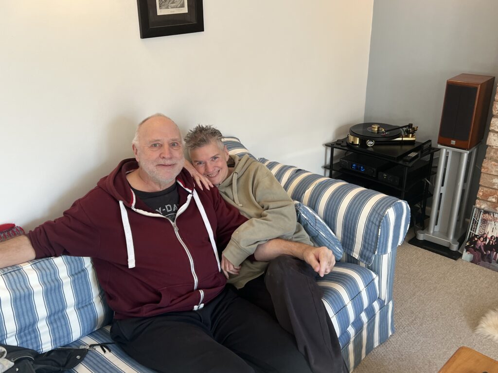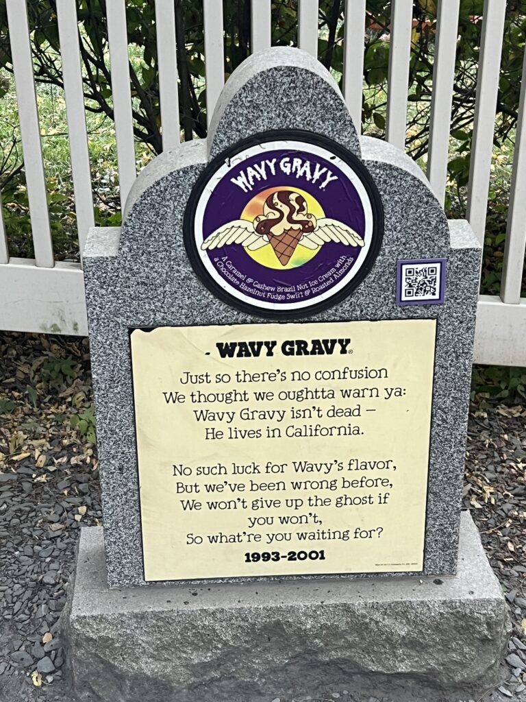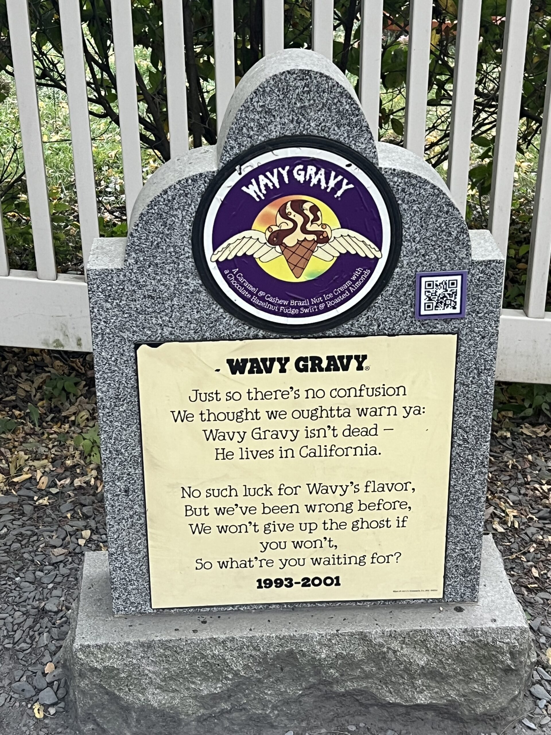 Jean Roy lives near Albany, New York, and put us up on our way to Montréal.John Roy took this lovely pic of us in his home in Greensboro.Ben & Jerry’s ice cream factory in Waterbury, Vermont, features graves of discontinued flavors!The Smithereens playing in the Kate Theater (as in Hepburn), Old Saybrook, Connecticut.The always charming Jim Blakey with Lisa before the Smithereens concert.