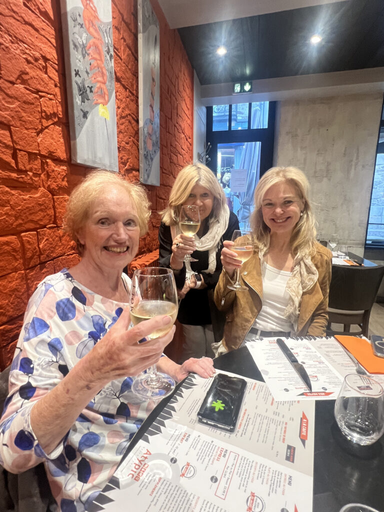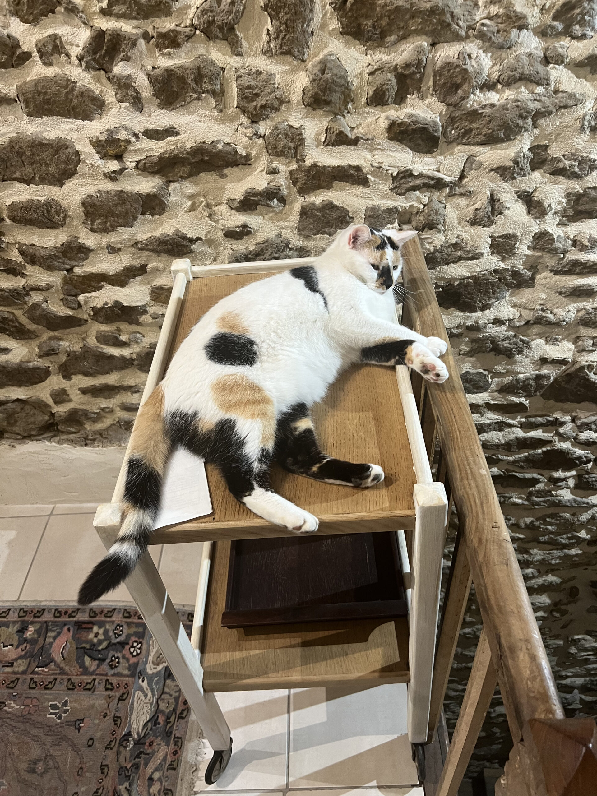 Arlo and his delightful new girlfriend Erato took a few days off from their crazy work schedules in Athens and visited us. That’s Mont Saint Michel.Our landscaping has advanced well over the last year, and Lisa has been hard at work training the new fast-climbing vines.My law school friend George Paul, taking the pic, brought his wife Bonnie to Paris, and we visited with them for a couple of fun days.Lisa’s high school friend Julie and her husband Larry met up with us in Bayeux, the Norman town famous for its tapestry of a regrettable historical event in 1066.Callie on the trolley requesting attention by the simple expedient of looking adorable.Linda’s birthday celebration, with Elaine and Lisa joining in the champagne fun.Sadly, NIck and Charlotte abruptly divorced after 15 years together. Eliza visited us a few times.A weekend in London for a concert in Hyde Park featuring Van Morrison, Cat Stevens and Neil Young. Rock’n’Roll is here to stay!I honked a car in my village when he blocked all three directions of traffic, and he kicked this. It is time to move on.