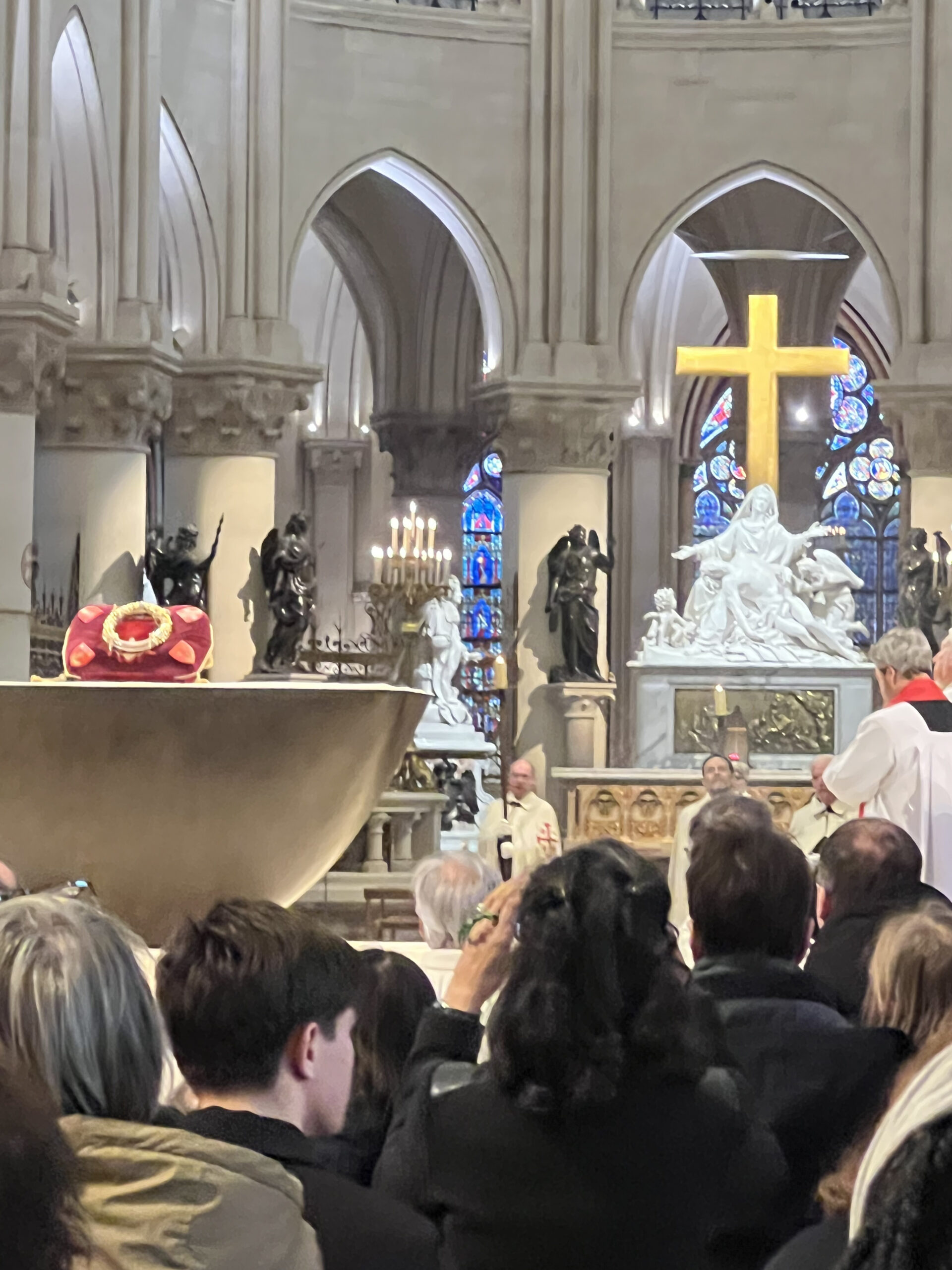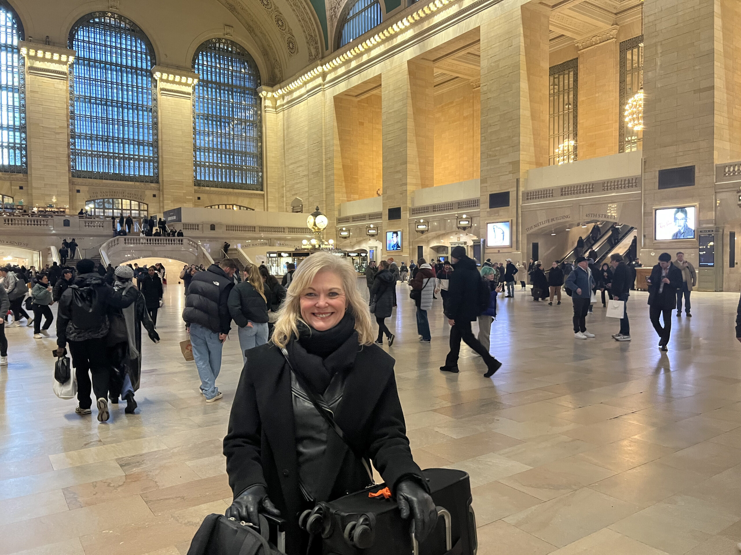 In La Coupole on Valentie’s Day with attractive strangers at the next table. The dome is the waiter’s head! The shining ring on the red velvet cushion purports to be the crown of thorns worn by Christ. Right!! Yet when we approached it, we each felt something warm and wonderful in our chests, and we both wept.With the grandchildren near New Haven. Grandma Lisa and mom Shannon playing with baby Sylvie (who turned two while we were there) and Rosamond (age 7).The oldest granddaughter, Mabel (age 9), after her first salon haircut. Grandma Lisa treated the girls.With the three girls in their living room. We couldn’t wait to see them again. You can see Shannon, the photographer, reflected in the windows.We passed through Grand Central on our way to San Francisco. One good thing about New Haven is that you tend to go through New York City to go anywhere.