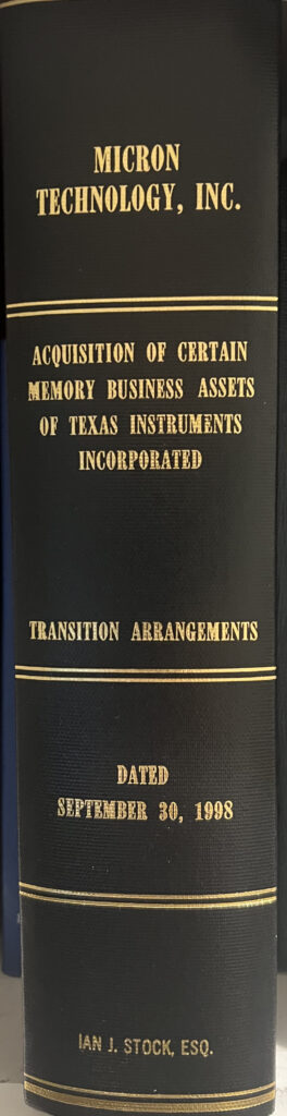 The spine of one of my bound volumes from WSGR’s Micron deal – my first visits to Boise.