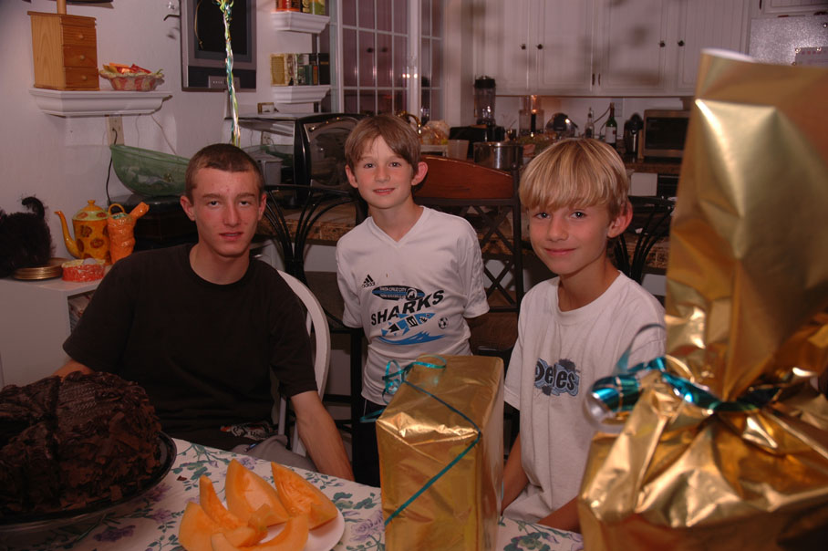 One from the breakfast nook in our home in Santa Cruz on Alex’s fifth birthday in 2003. This was taken when, by common accord, they decided spontaneously to make faces, which did happen regularly!