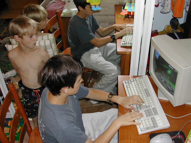 Charlie is four years old in the photo on the right and already heavily into video games. Alex at six is to be found below playing them too. There were other activities which preoccupied our young charges, but few as pressing or hypnotic as video games.