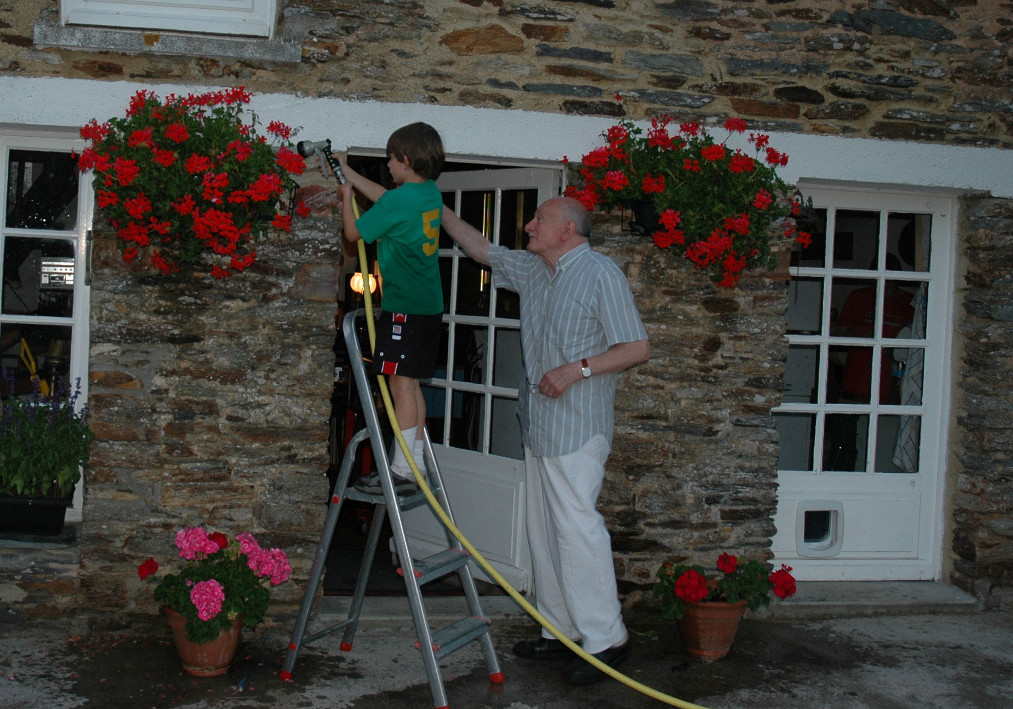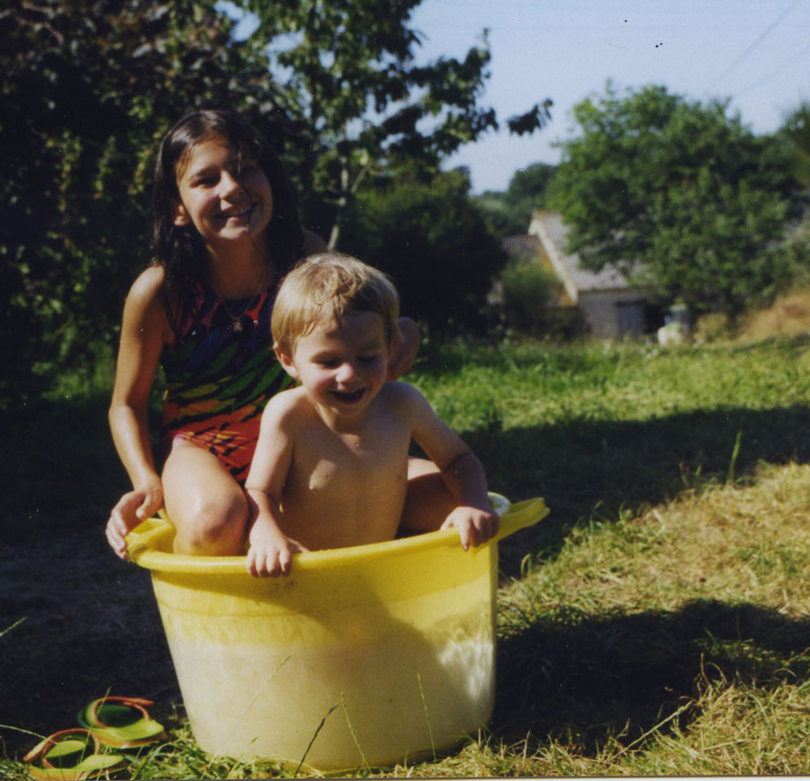 The lack of adequate bathrooms was not a problem for us, and especially not for the children. It was a part of being at our vacation home. We were grateful when grand-père installed an enclosed shower, when was that, 1996? The children barely noticed the improved facilities. As the photos on this page show, 1996 was a year of wonderful times at La Grée.