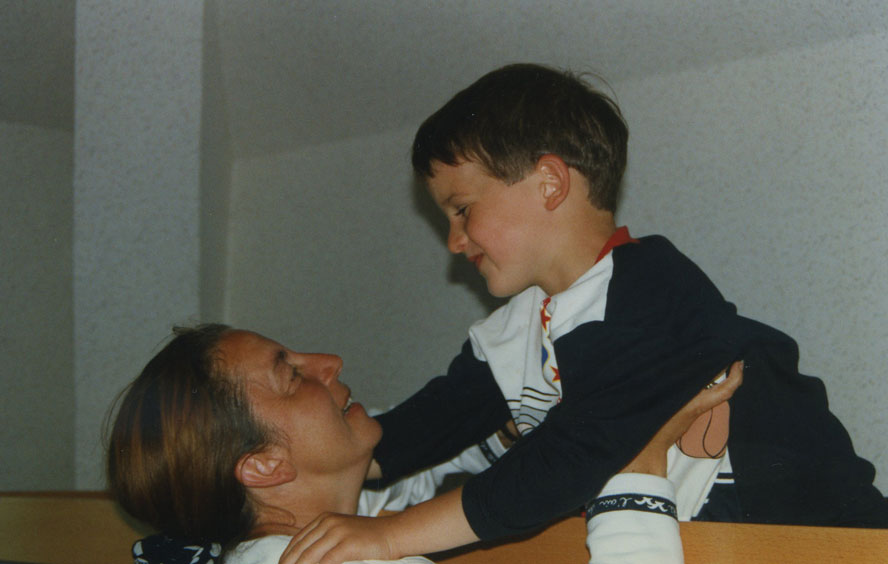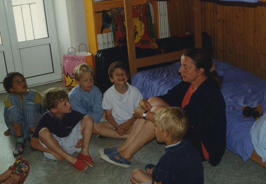 - Madame Vidal wishing Tom a good night in Cancale. It was June 1996, which made Alban and Tom still six years old each.