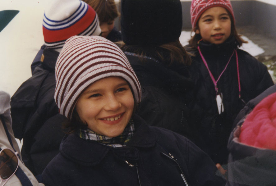 - Daphné looking pleased with life during the same school ski trip. She was nine years old and Nick ten.