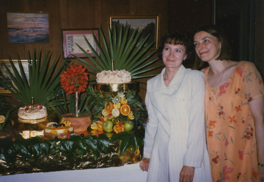 - Marie-Hélène with Joce, her maid of honor, standing next to the food.