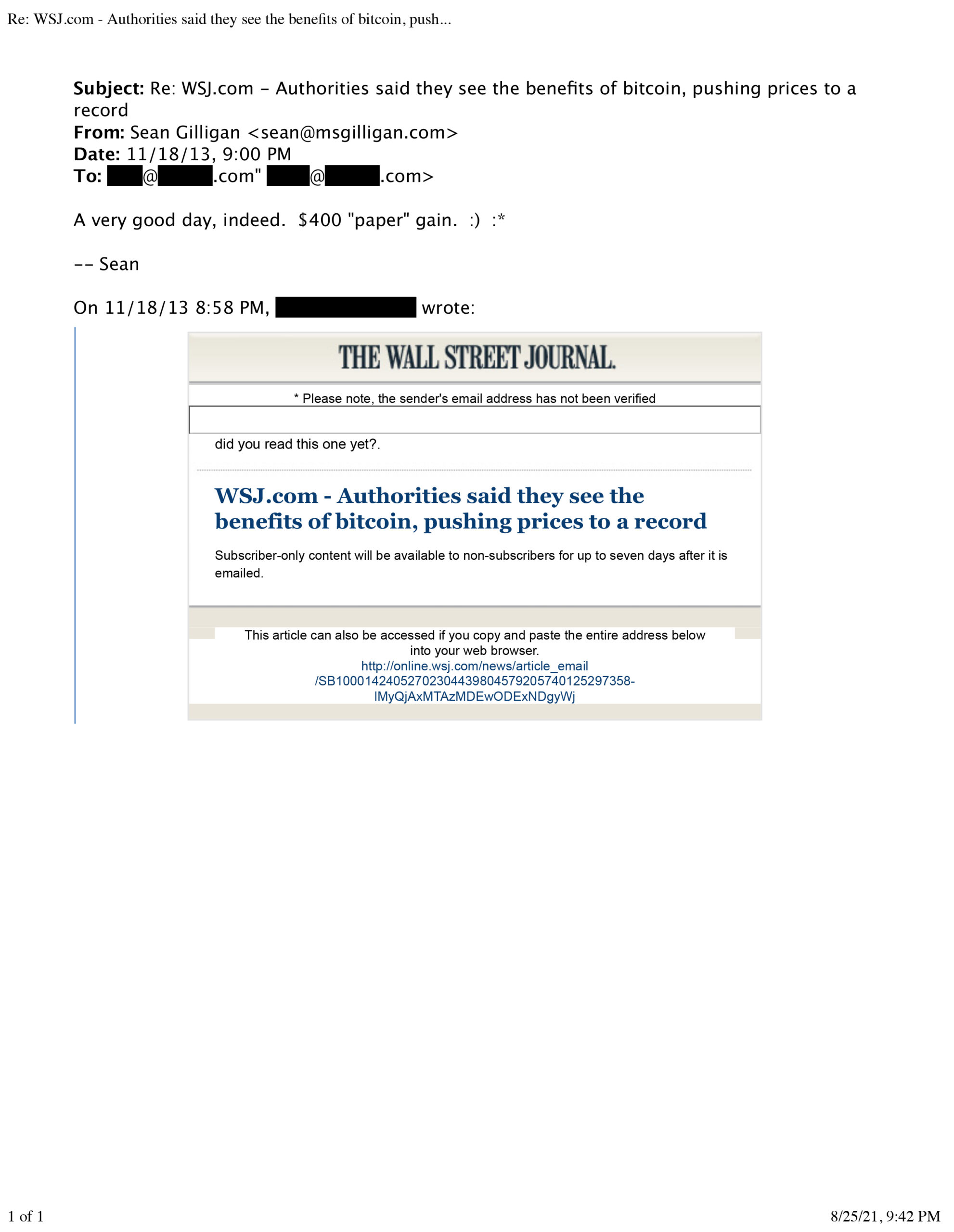 A Wall Street Journal article attacked ShapeShift, a crypto company that Sean was intimately involved with. His “best friend” during the last five years of his marriage, Sarah Blincoe, was the sister of its former CFO, Justin Blincoe. ShapeShift engaged CipherBlade, a crypto expert, to defend their reputation. Many divorcing women also engage CipherBlade, at $650 or more per hour!